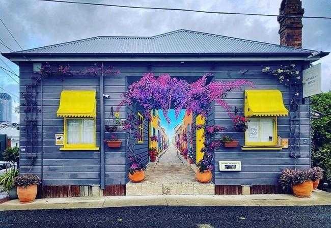 5 – Um mural que traz uma ilusão de ótica perfeita de uma rua cheia de casas