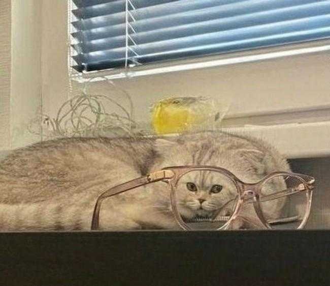 17 – Parece que esse gato está sentado, mas na verdade ele está deitado