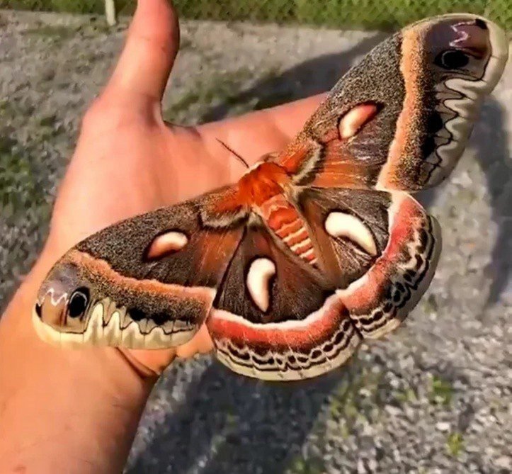 14. Uma mariposa cecropia incomumente grande, a envergadura máxima normal é de 5-7 polegadas, mas esta parece maior.