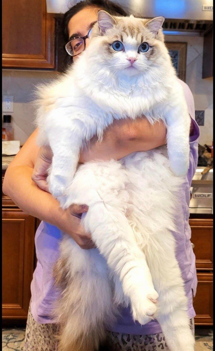 16. Esposa é alérgica, mas não resistiu em carregar meu gatinho de 8 meses.