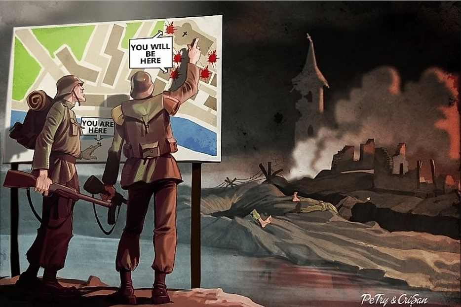 Eles mostram a morte terminando as vidas dos soldados que estão nela.