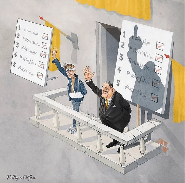 Os ilustradores romenos Horia Crisan e Bogdan Petry criaram ilustrações sarcásticas durante 30 anos, que refletem o mundo em que vivemos e que preferimos fingir que não existe.