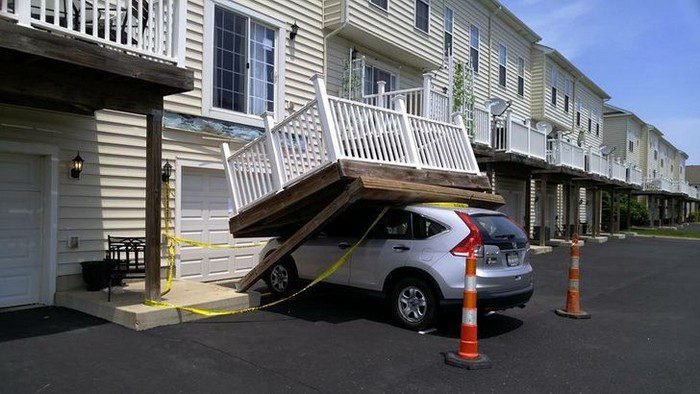 1 – De todas as varandas, foi cair justamente a que estava sobre o carro