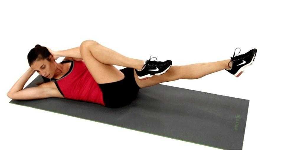 4. Deite-se com os braços estendidos para trás da cabeça.Seus pés devem ficar juntos e todo o corpo em linha reta.Em seguida, levante as pernas e os braços ao mesmo tempo, a fim de que eles se toquem.Segure nessa posição por alguns segundos e depois retorne à posição inicial.