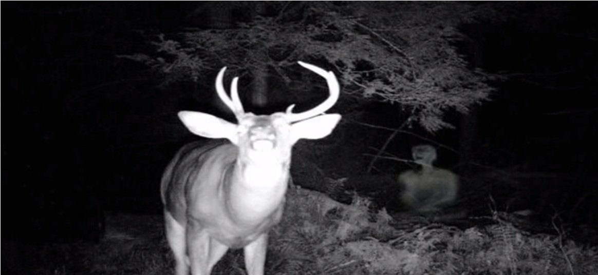 Um veado ativou o equipamento, mas a câmera registrou uma suposta figura de um espectro, que muitos acreditam ser um alienígena.