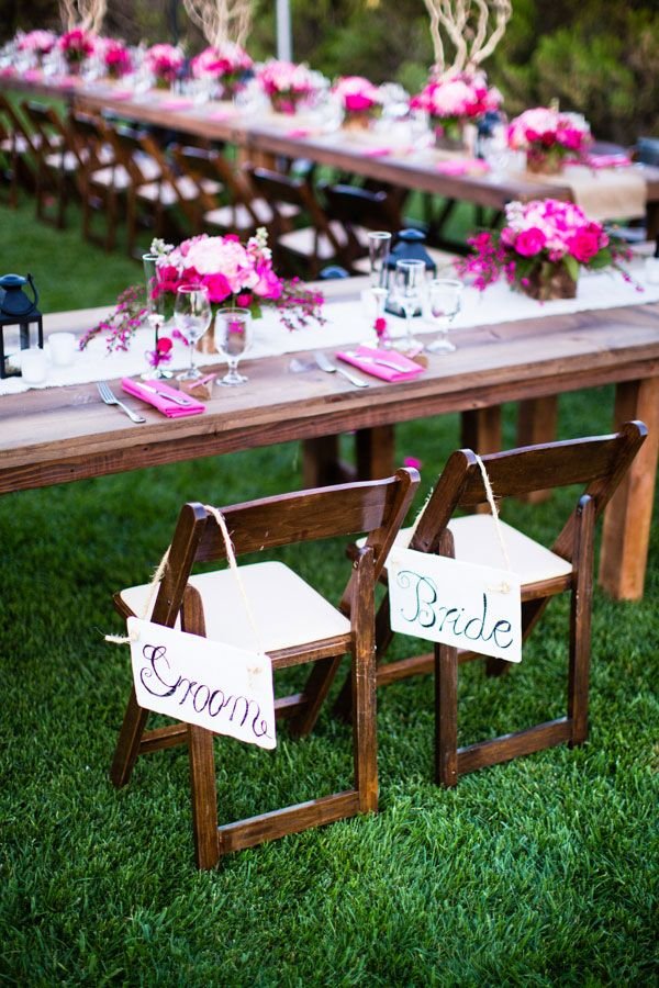 Imagem 44 – As placas na cadeira dos noivos rendem belas fotos!