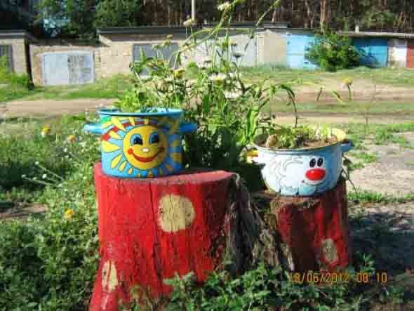 Imagens de artesanato com bules e panelas velhas
