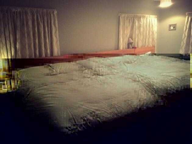 Por esse motivo, os pais resolveram agrupar três camas diferentes com finalidade de acomodar toda a sua família.