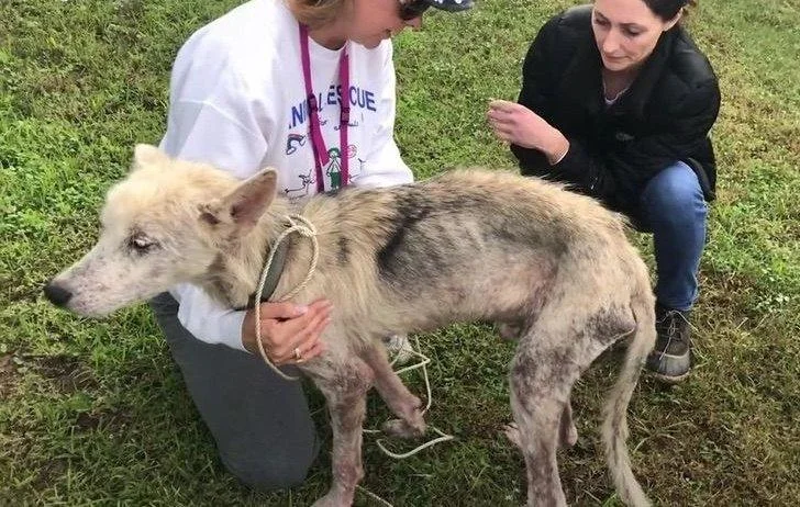 No dia do seu resgate os voluntários ficaram surpresos, chegando a classificá-lo como “um saco de ossos”.A criatura era pura pelee suas costelas estavam perfeitamente marcadas, o pelo estava maltratado e irregular.