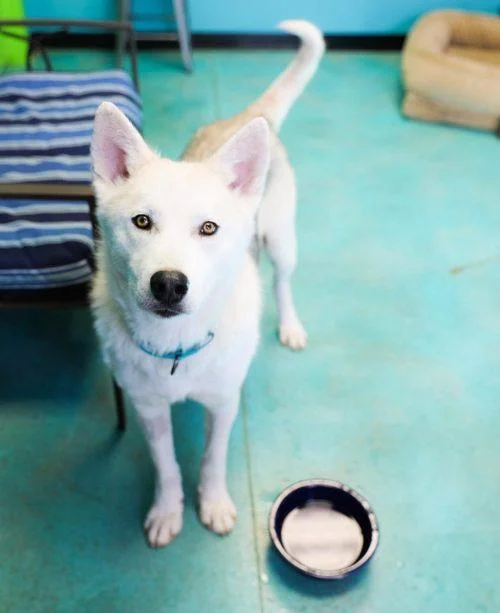 Este cachorrinho, umamistura de husky siberiano,veio à sua primeira casa quando era ainda um cachorrinho. O seu dono comprou-o para dar de presente ao seu parceiro, mas assim que o amor entre eles acabou, a compaixão e o carinho que tinham para ele também acabou.
