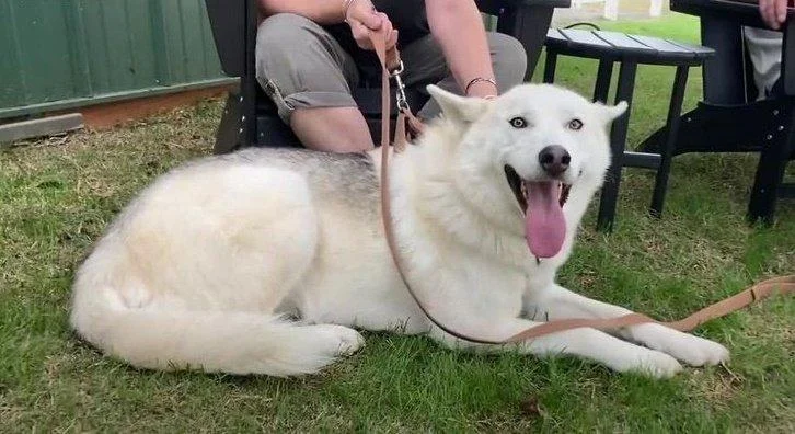 O cachorrinho voltou a ser o belo husky que era no início da vida e quando ficou pronto foi entregue para adoção.