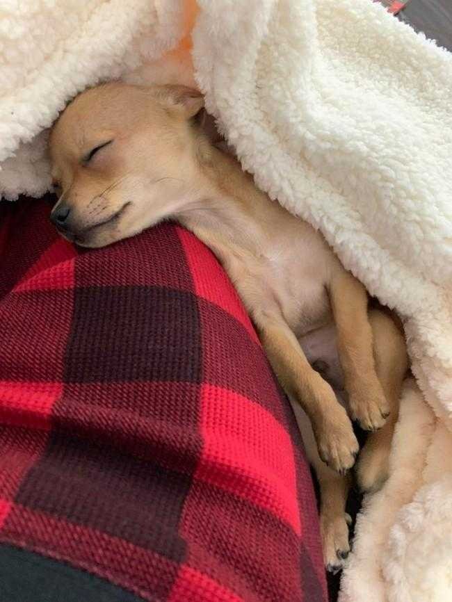 5 – Ele encontrou um lugar aconchegante para deitar – nas pernas de seu dono