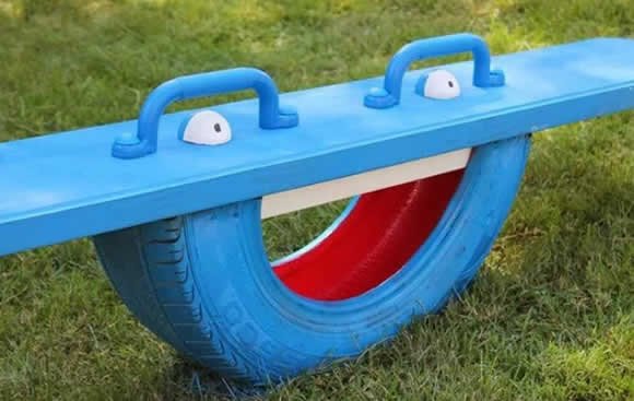Veja como ficou linda essa gangorra reciclada com pneu. Muito fofa! É uma linda ideia para você se inspirar e fazer uma para os garotos e garotas brincarem também!