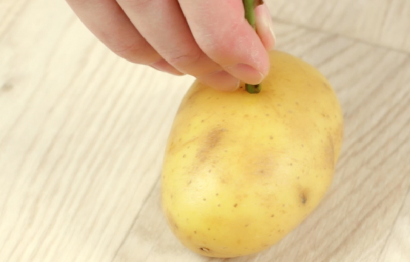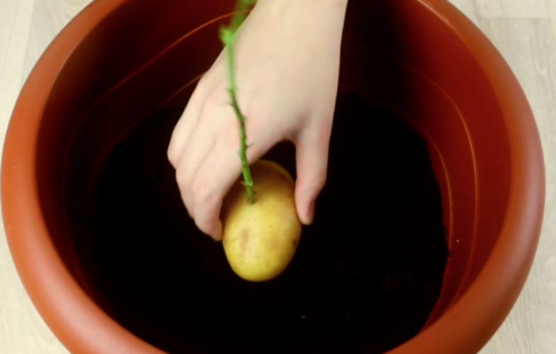 Em seguida, coloque terra no vaso e deixe um espaço para colocar a batata bem no centro.
