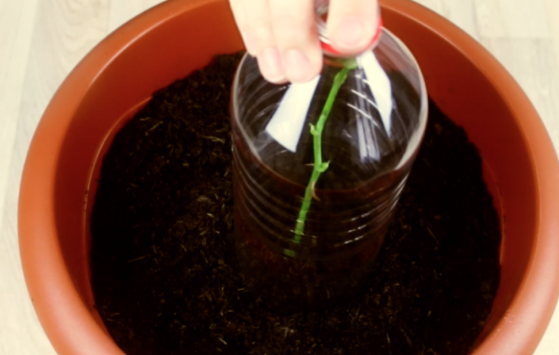 Corte a garrafa no fundo e a insira com cuidado ao redor do talo.