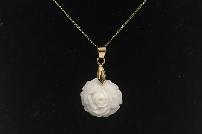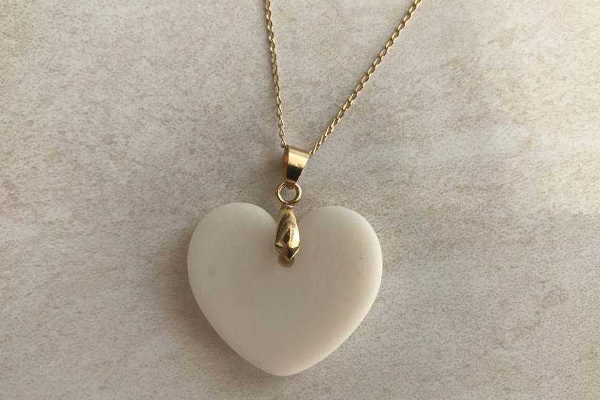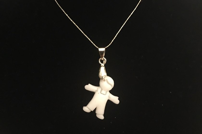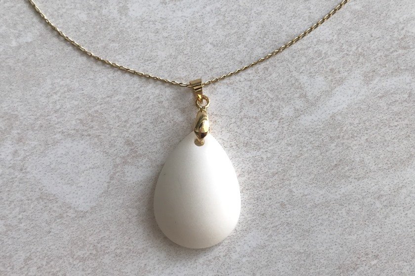O site informa que “pela organicidade da matéria prima (leite materno) a cor pode variar, bem como a textura do pingente”, ou seja, cada peça feita é única. O material das joiasparece resina branca.