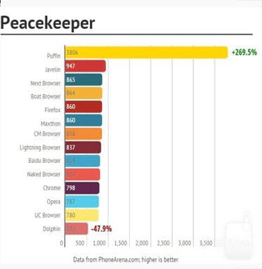 - Puffin mais uma vez se saiu superior, no teste Peacekeeper, alcançando 3806 pontos.