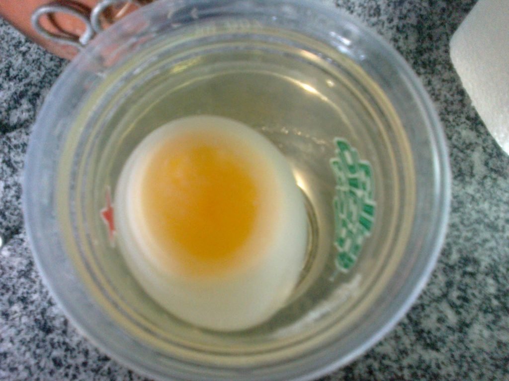 3. Em um recipiente coloque o ovo e adicione o vinagre, em quantidade suficiente para cobrir o ovo pela metade;