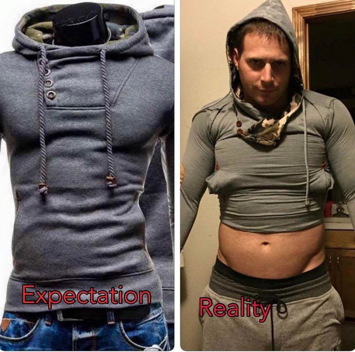 E isso pode acontecer com várias coisas – desde roupas até alimentos decepcionantes, cuja realidade é bem distante da expectativa.
