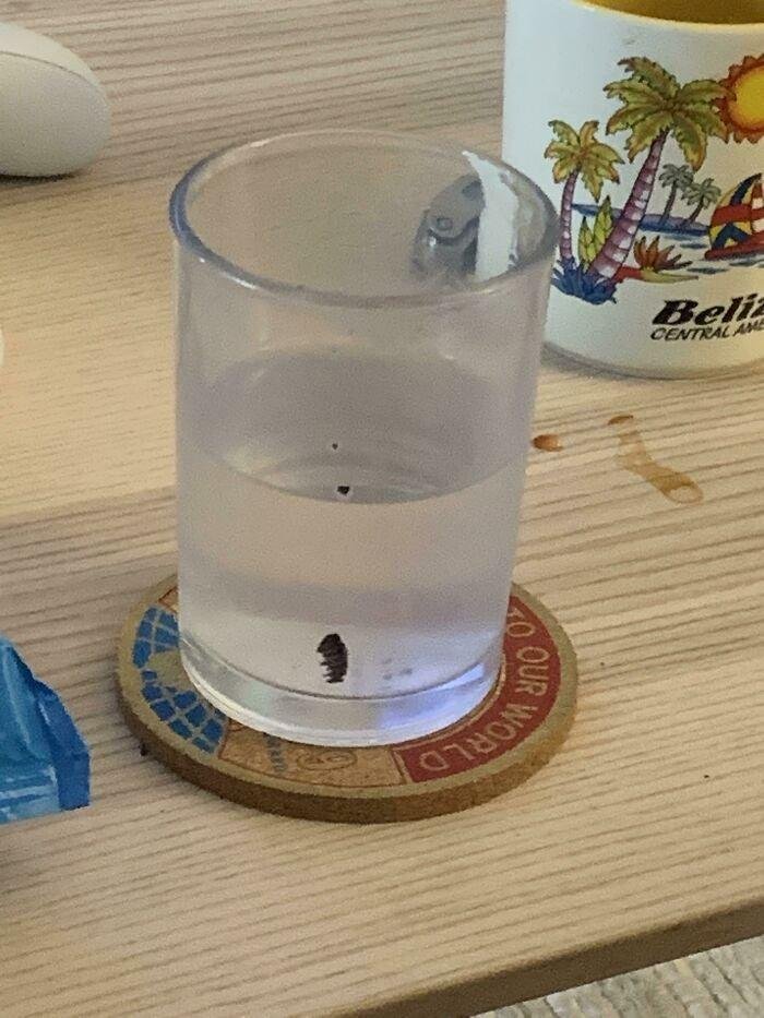19 – Ela mandou este foto para o marido pra mostrar a ideia que ela teve para ter certeza de que tomou 1L de água antes do ultrassom. E ele perguntou se ela tinha limpado o recipiente antes, porque ele tinha usado para limpar o carpete!
