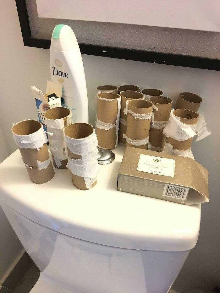 17 – “Meu namorado não joga fora os rolos de papel higiênico vazios.Em vez disso, a parte superior do banheiro se tornou a área de exibição de lixo dele”