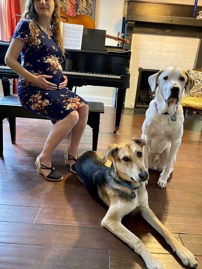 16 – “Pedi ao meu marido para fazer uma sessão de fotos de maternidade. Os cães não parecem ótimos?”