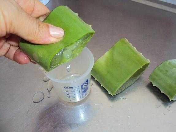 - Líquido de duas folhas de babosa (para extraí-lo, abra as folhas no meio e raspe o gel)