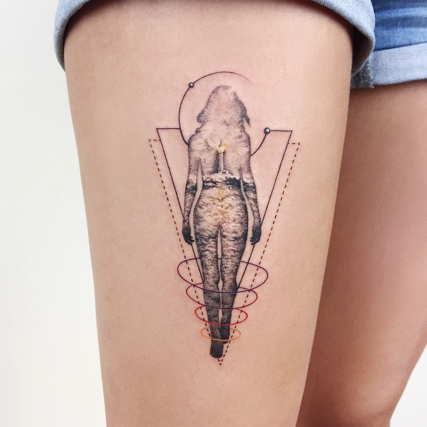 As tatuagens geométricas são muito lindas, e podem combinar direitinho com sua personalidade. Tudo vai depender da combinação dos desenhos.